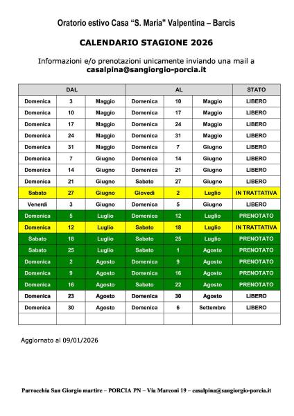 Inviate una mail all'indirizzo casalpina@sangiorgio-porcia.it